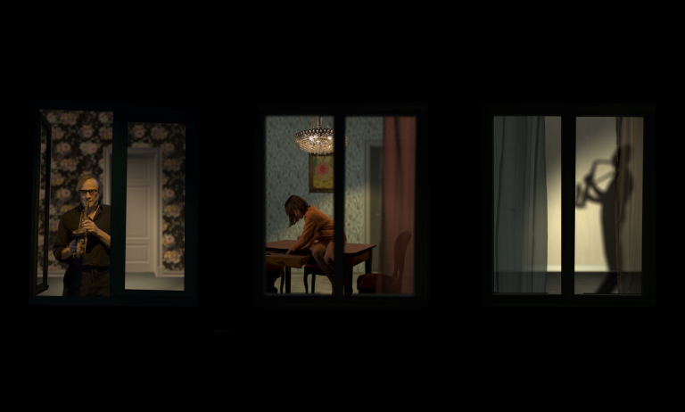 Dans un immeuble pas comme les autres, des enfants vivent entourés de voisins musiciens. Leurs gestes quotidiens rythment également la vie de leurs voisins. Lorsque la lumière s'allume, le trompettiste joue. Lorsqu'ils repassent leurs pantalons, l'archet du contrebassiste suit le mouvement. Les enfants chuchotent des notes à travers les murs, composent avec la lumière, dirigent en mangeant de la mousse au chocolat.
