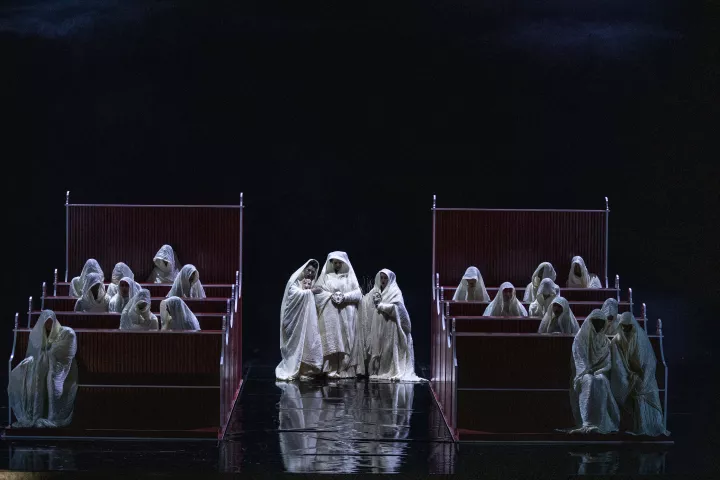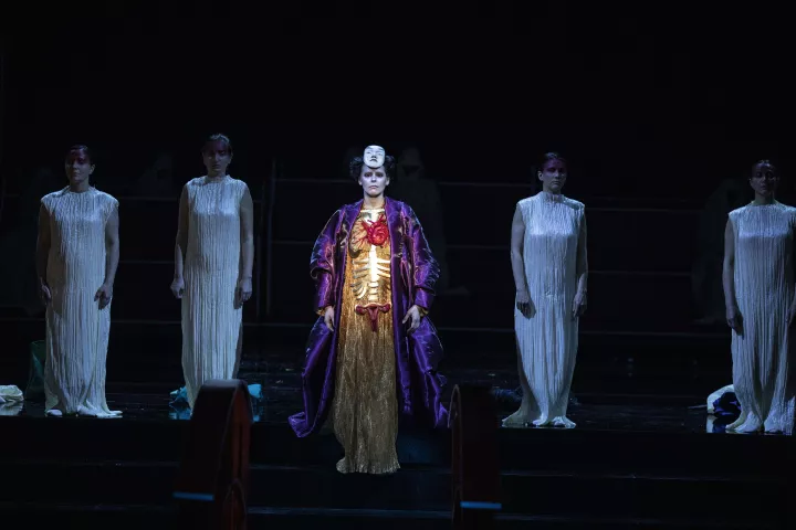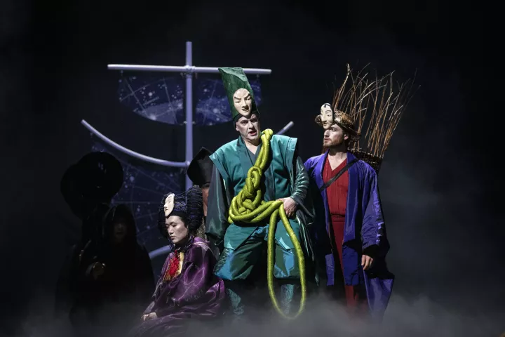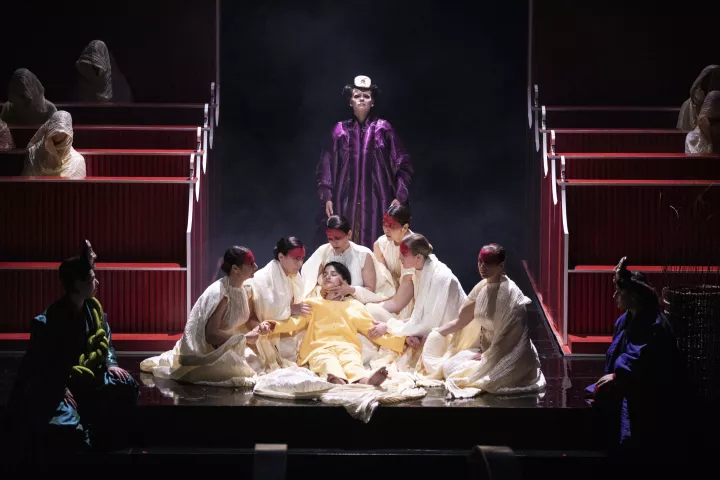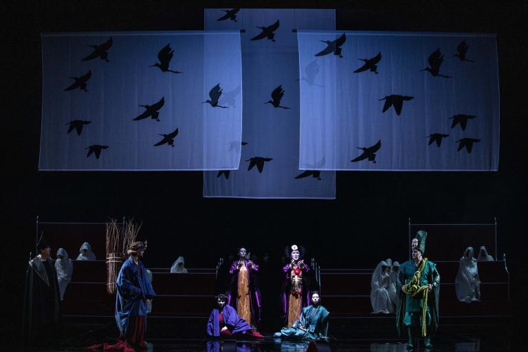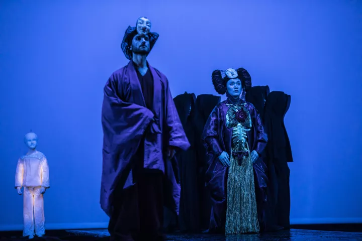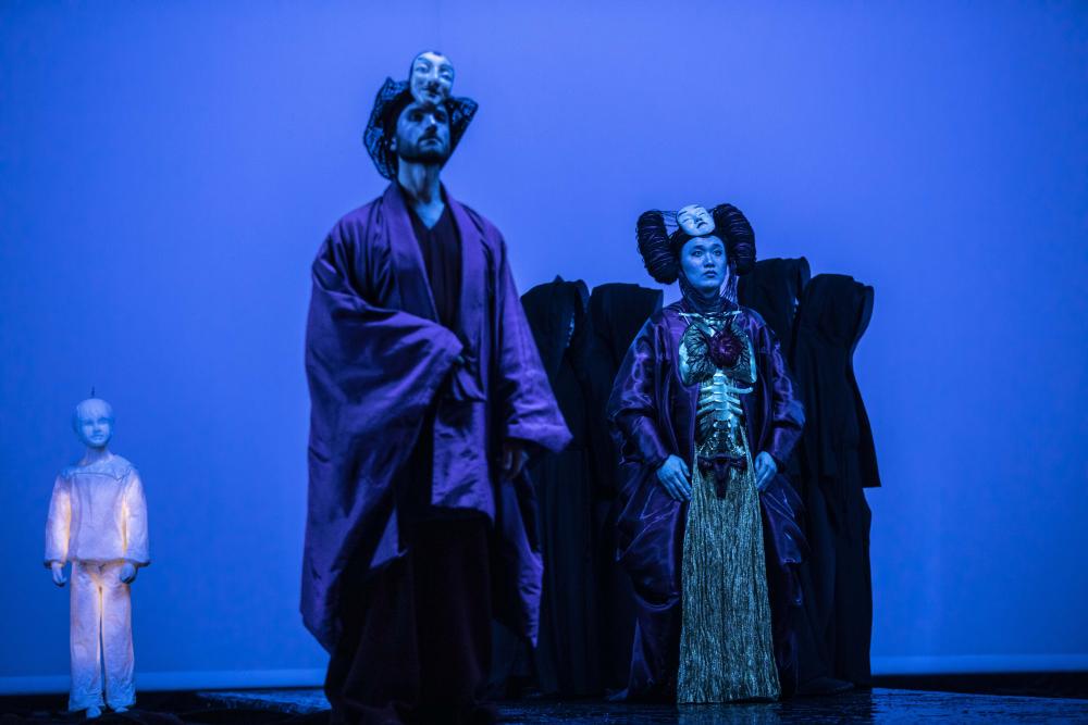La metteuse en scène, qui signe également le livret, fait dialoguer les deux récits dans une mise en scène inspirée des codes du théâtre japonais, où l’épure, l’abstraction et le silence deviennent de puissants vecteurs d’émotion.